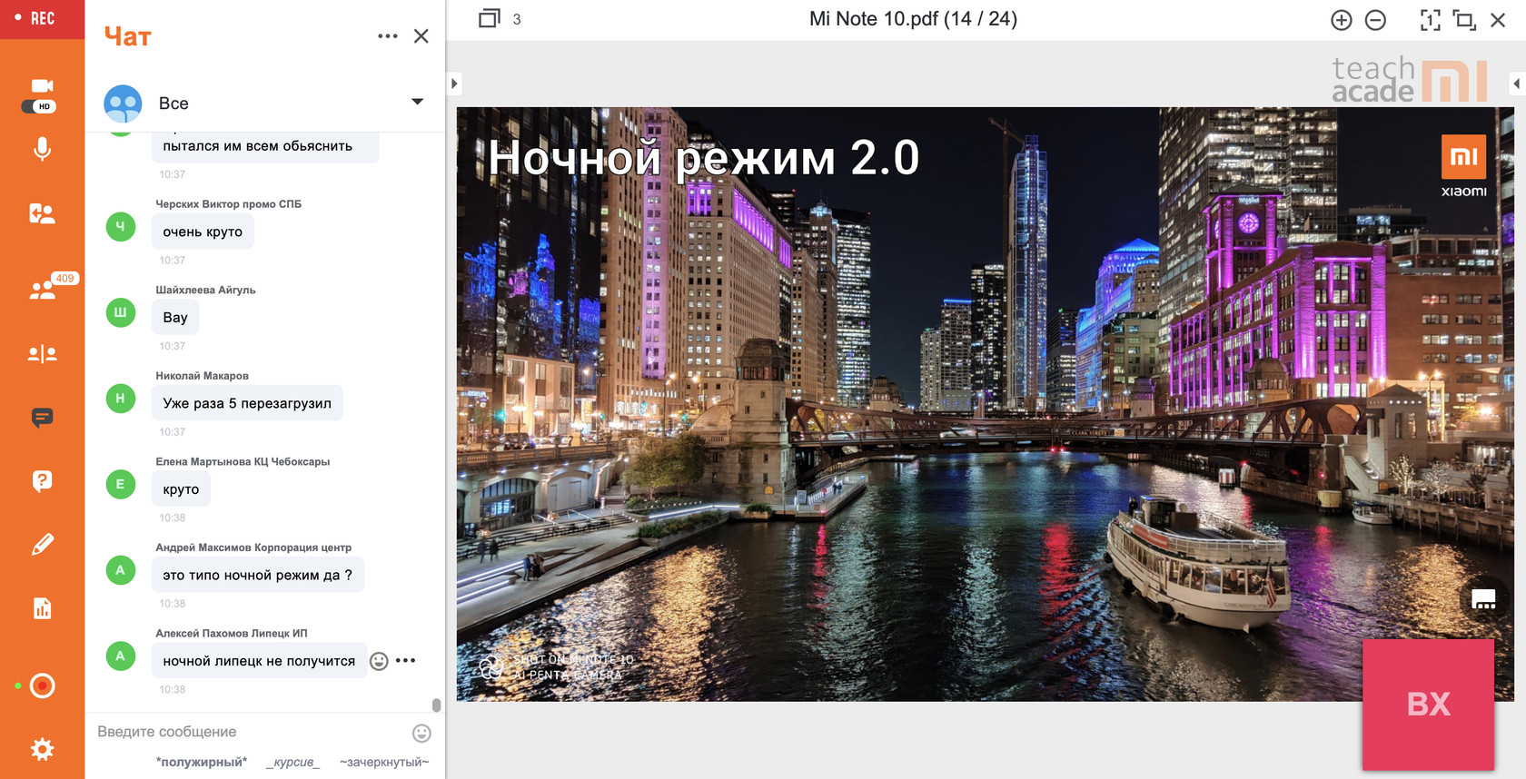 Участники пишут ответы и делятся впечатлениями прямо в чате